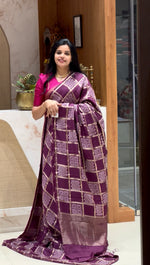 Fabric : Munga silk cotton saree with Zari woven checks pattern with a bandini prints!