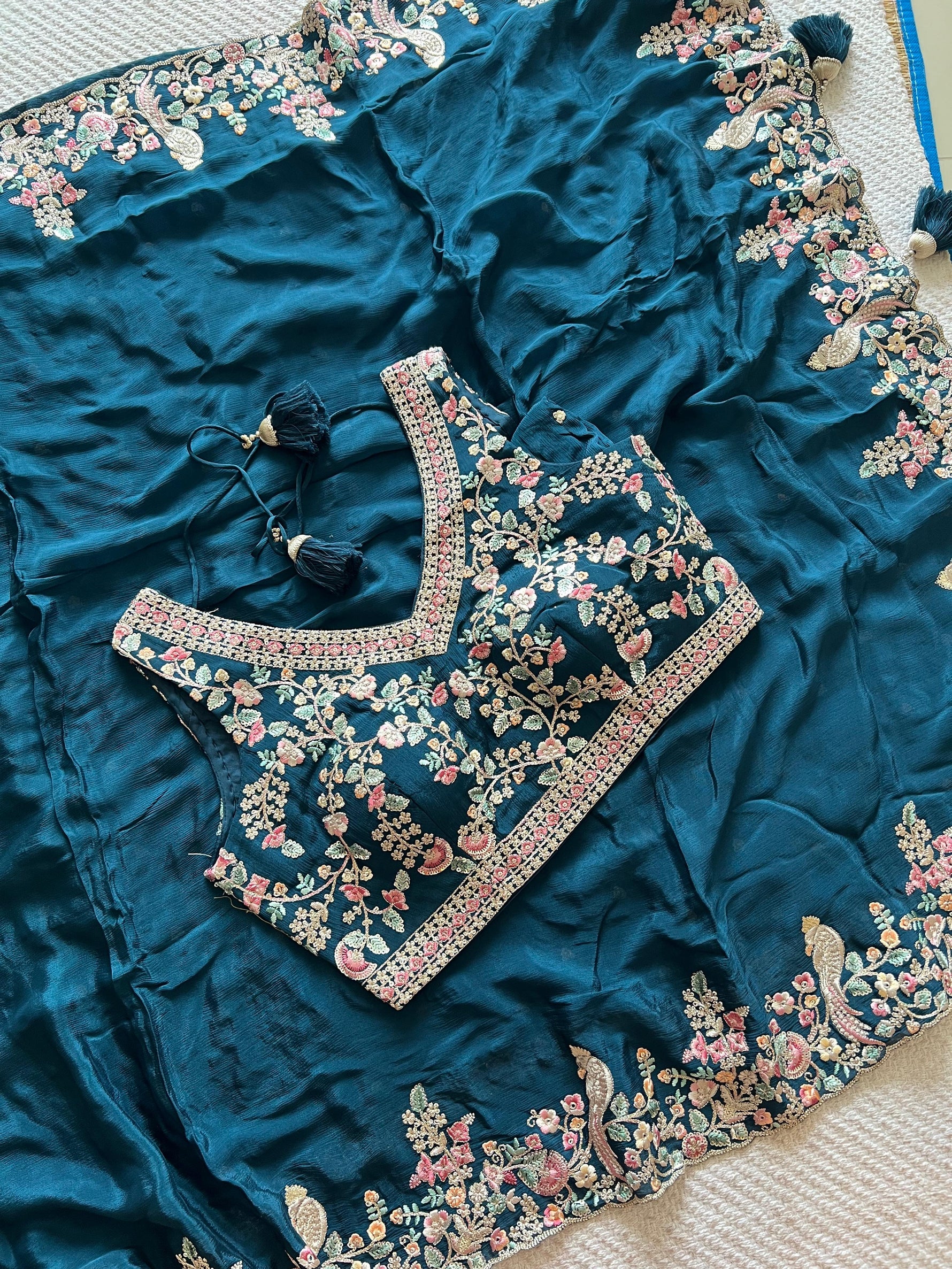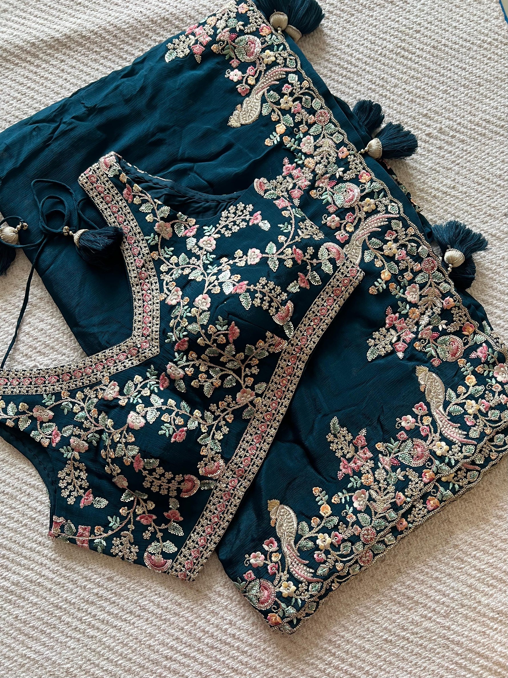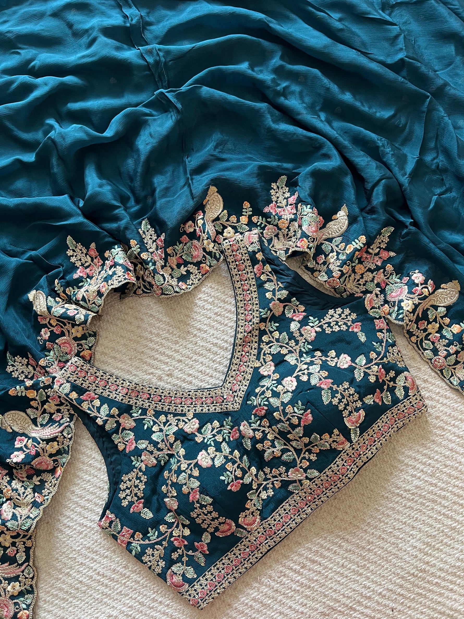 BLOUSE : GEORGETTE BLOUSE WITH EMBROIDERY, BLOUSE SIZE 38( CAN BE ALTERED UPTO 40)