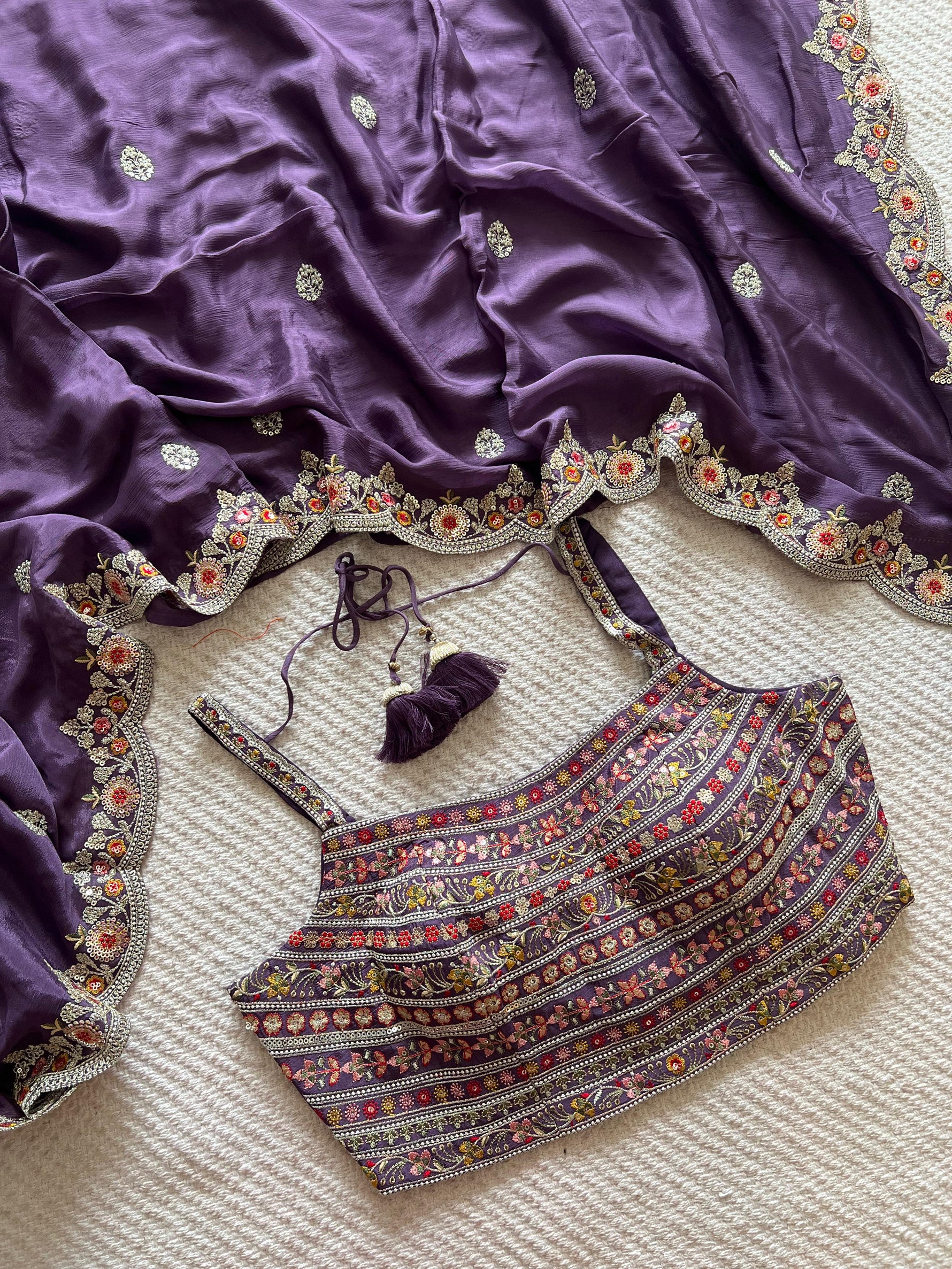 BLOUSE : GEORGETTE BLOUSE WITH EMBROIDERY, BLOUSE SIZE 38( CAN BE ALTERED UPTO 40)