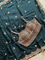 BLOUSE : GEORGETTE BLOUSE WITH EMBROIDERY, BLOUSE SIZE 38( CAN BE ALTERED UPTO 40)