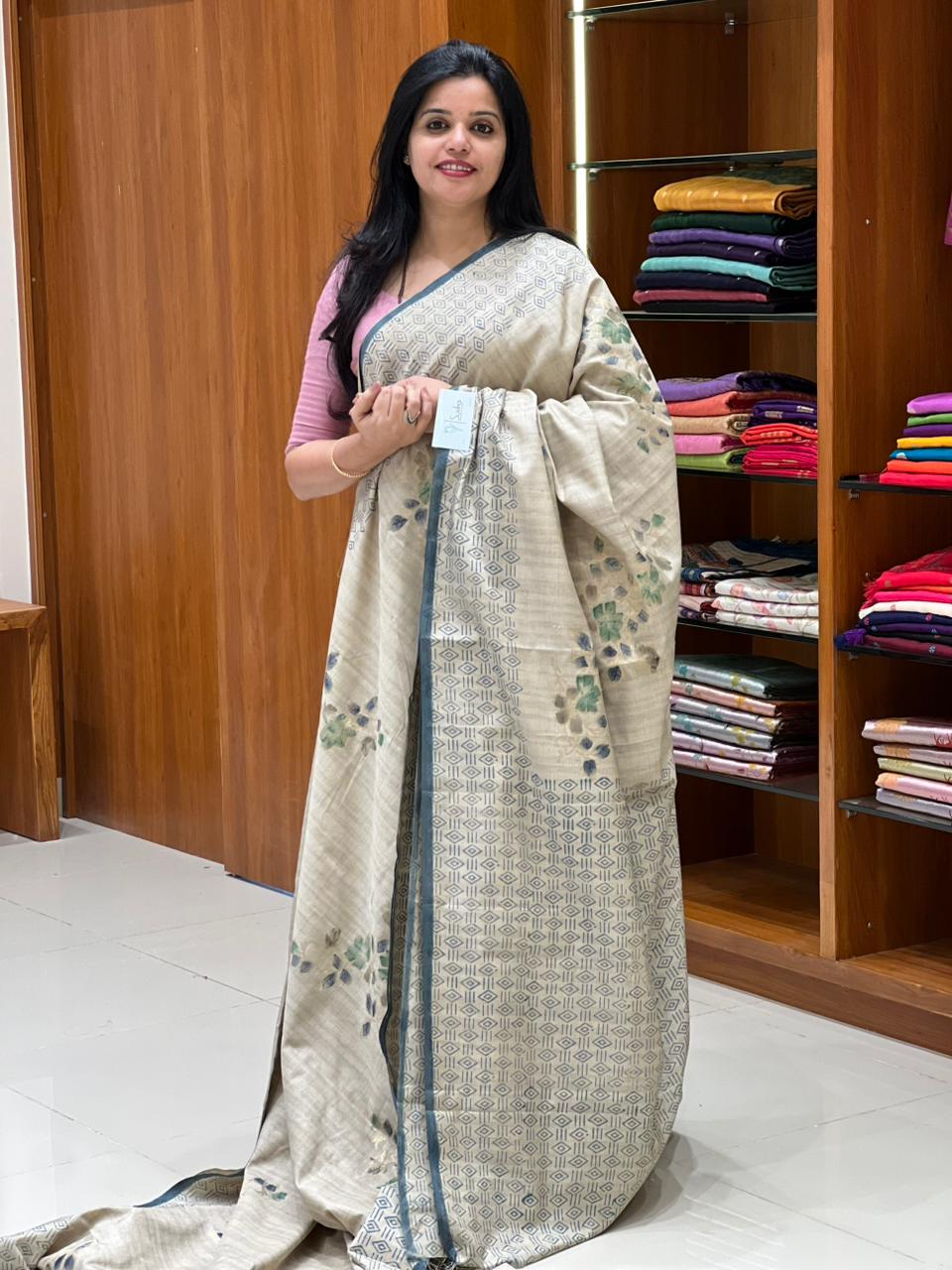 FABRIC:  Viscose Tusser saree with a waving florals highlihted with hand brush with a block printed border!