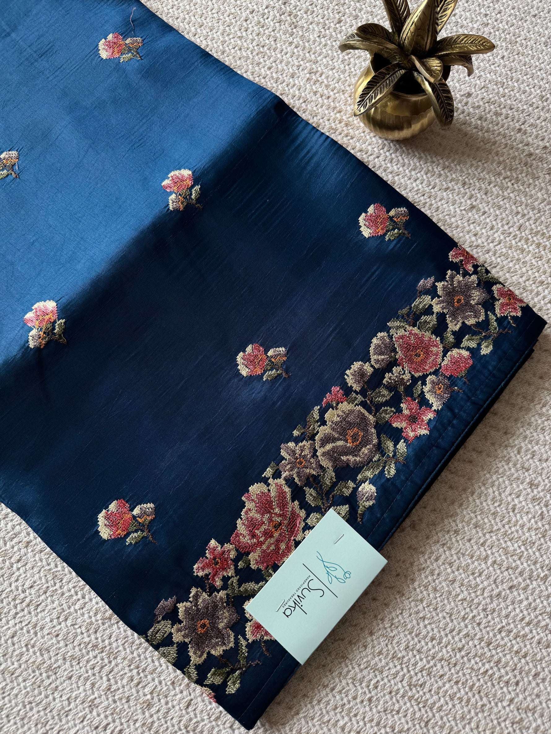 Viscose tussers WITH CROSS STITCH FLORAL EMBROIDERY FLOWER MOTIFS