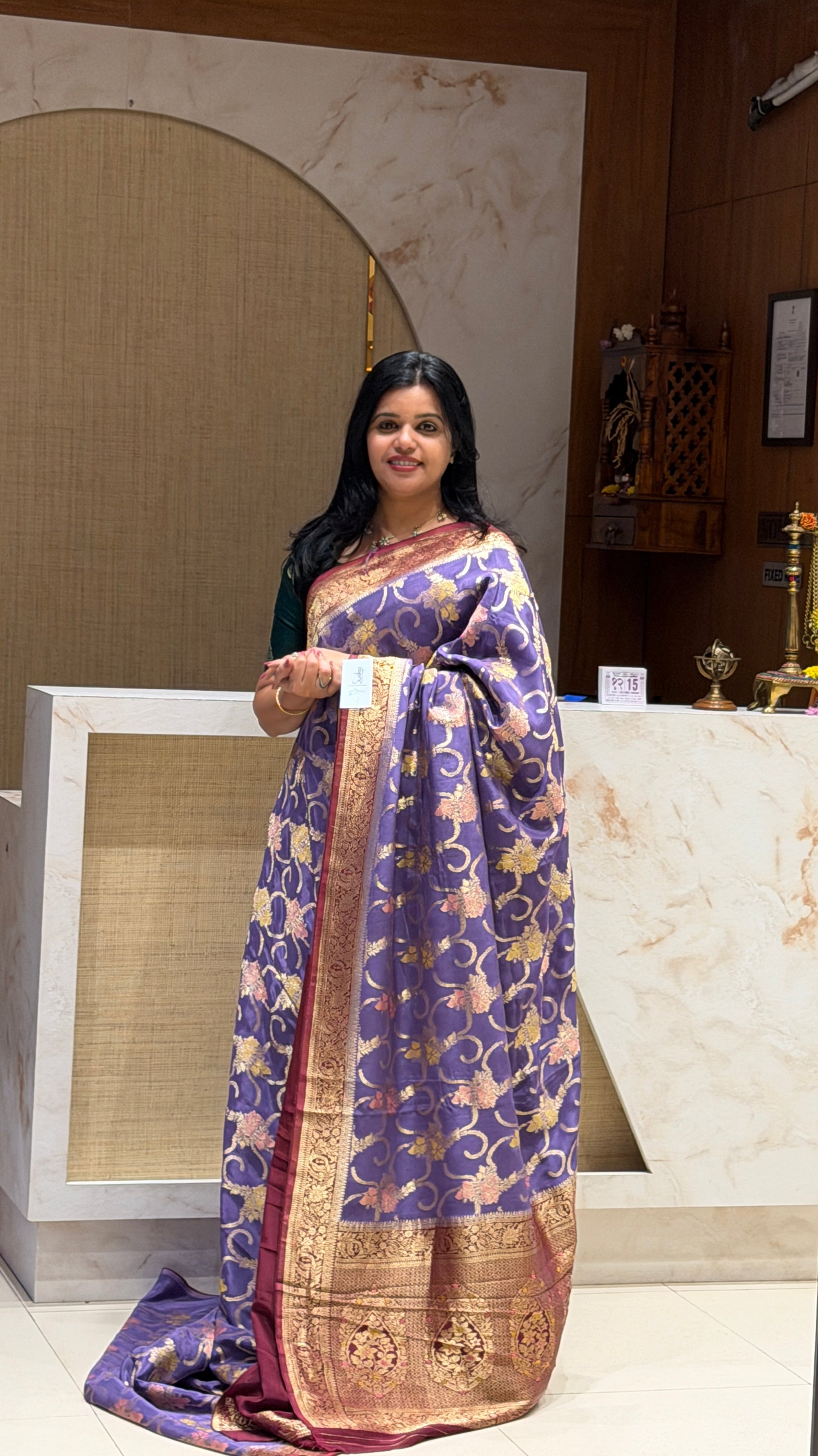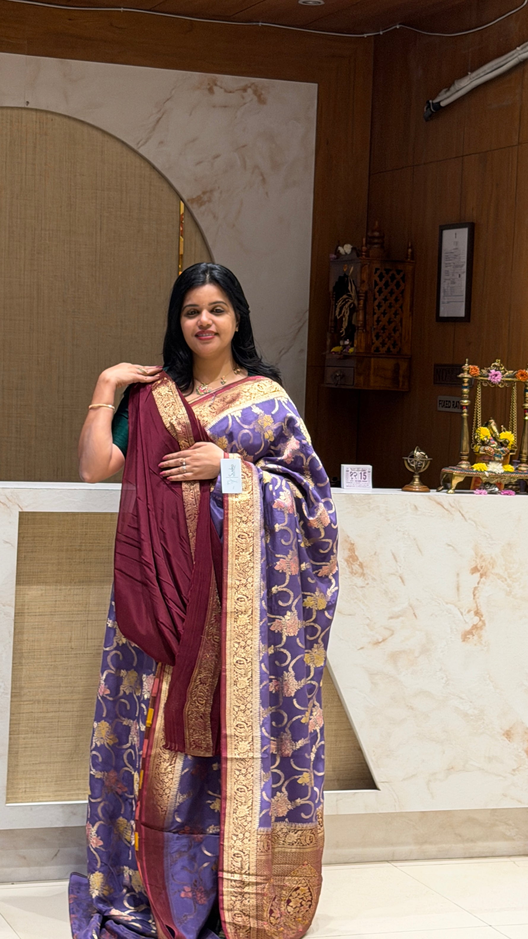 FABRIC : SATIN BANARASI MEENAKARI WEAVING SAREE BLOUSE : CONTRAST BLOUSE