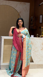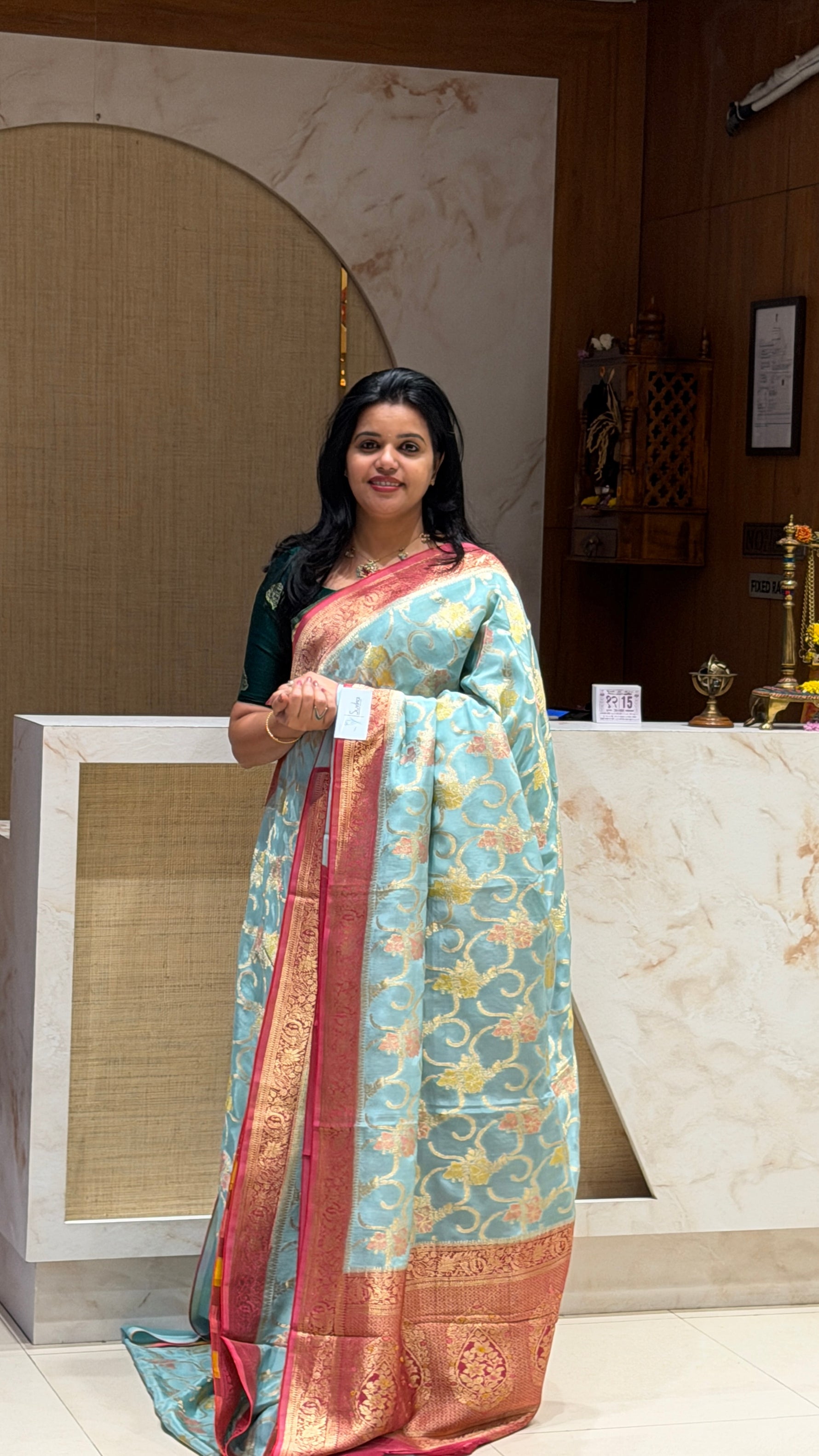 FABRIC : SATIN BANARASI MEENAKARI WEAVING SAREE BLOUSE : CONTRAST BLOUSE