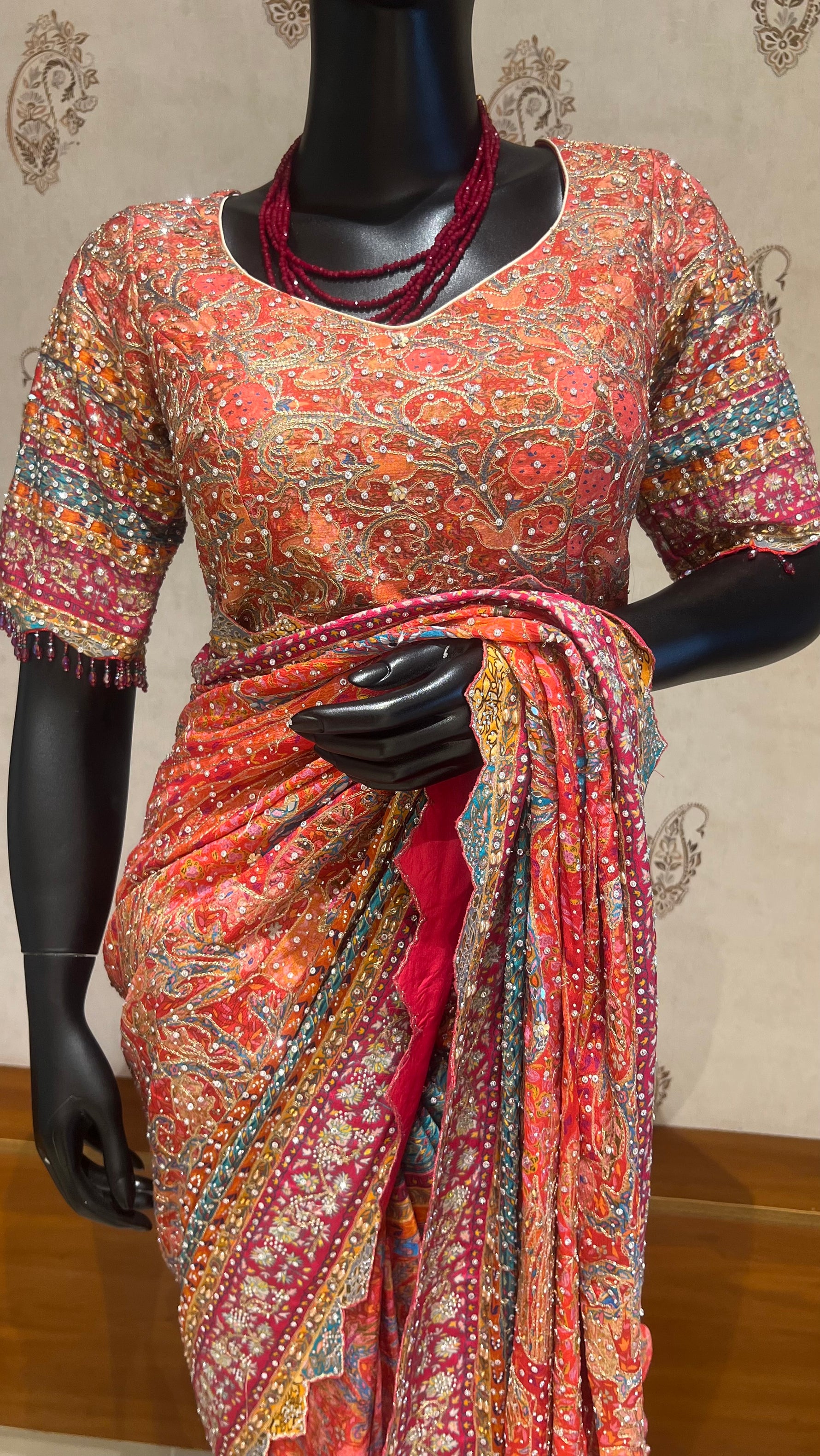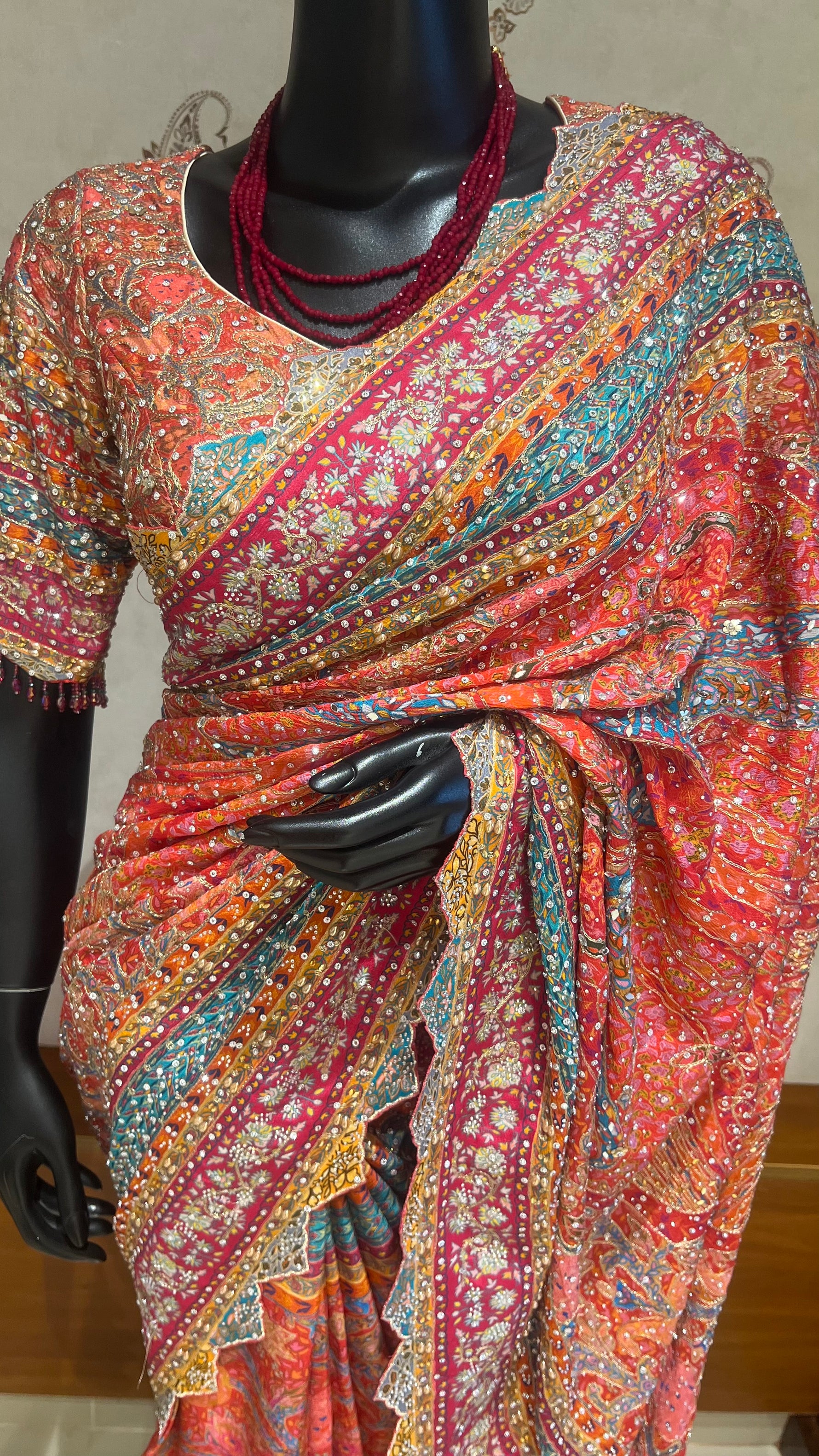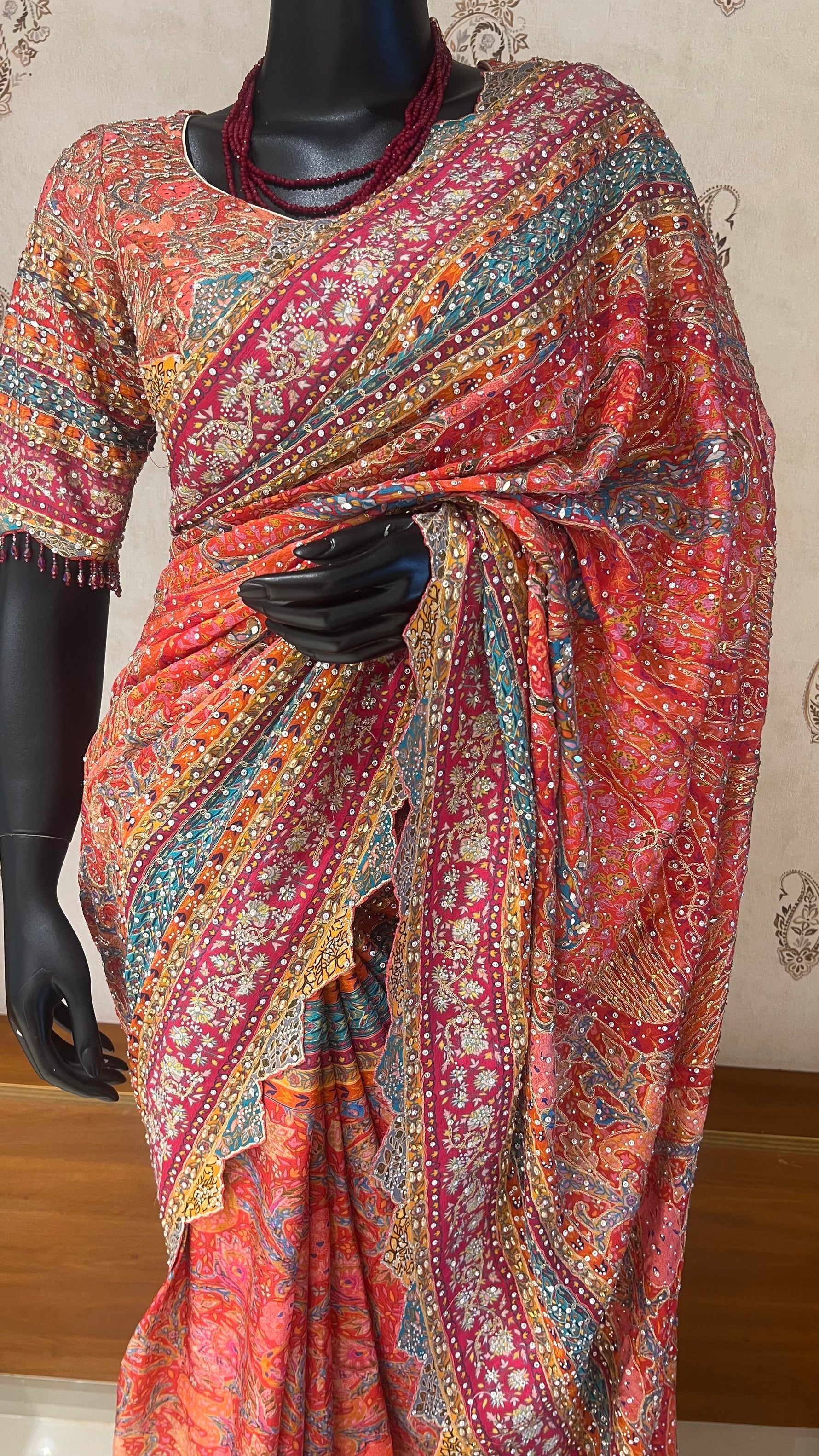 FABRIC: CREPE SILK WITH HAND WORK ALL THE SAREE