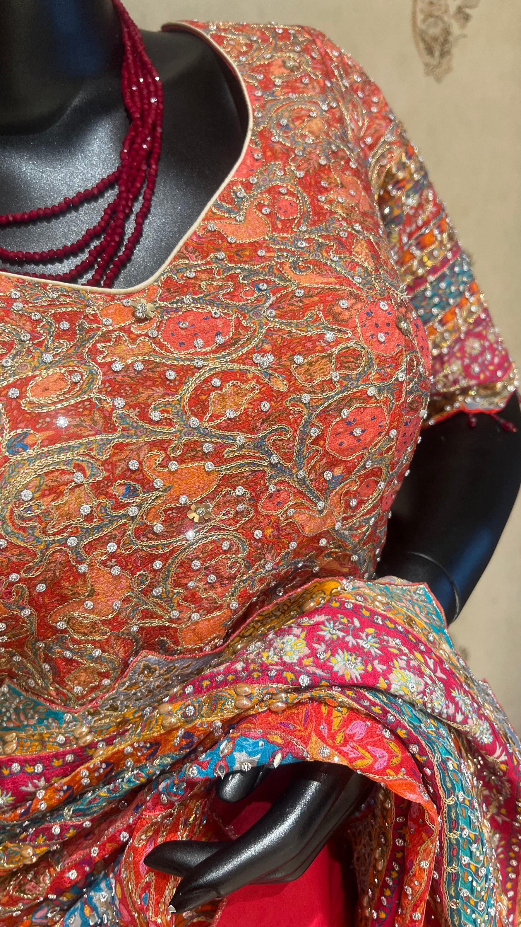 BLOUSE :  EMBROIDERY BLOUSE, BLOUSE SIZE 38( CAN BE ALTERED UPTO 40)