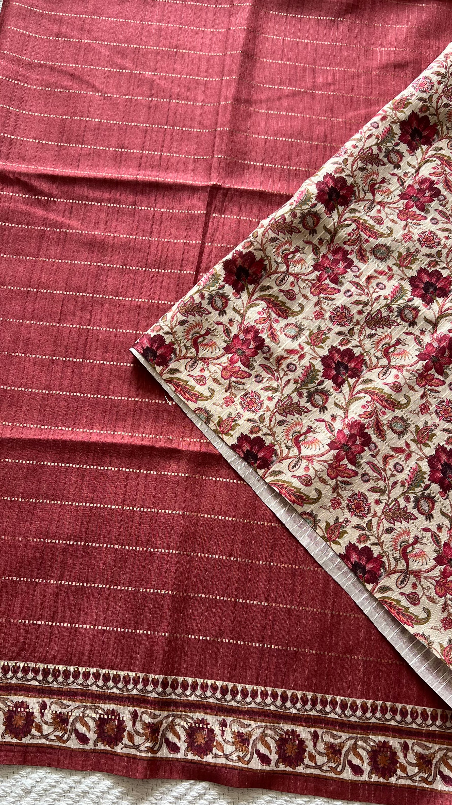 TUSSER SILK SAREE WITH PRINTED BORDER AND PALLU