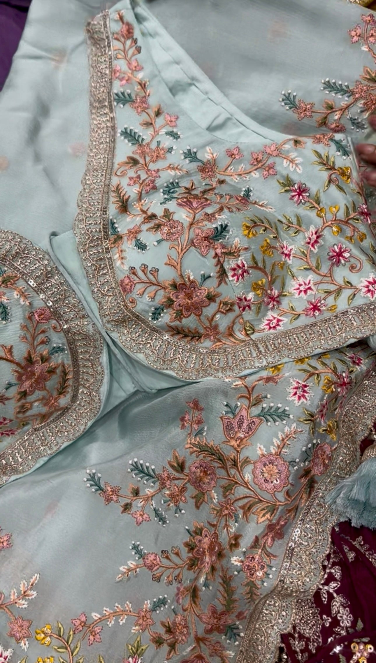 BLOUSE :  GEORGETTE BLOUSE WITH EMBROIDERY, BLOUSE SIZE 38( CAN BE ALTERED UPTO 40)