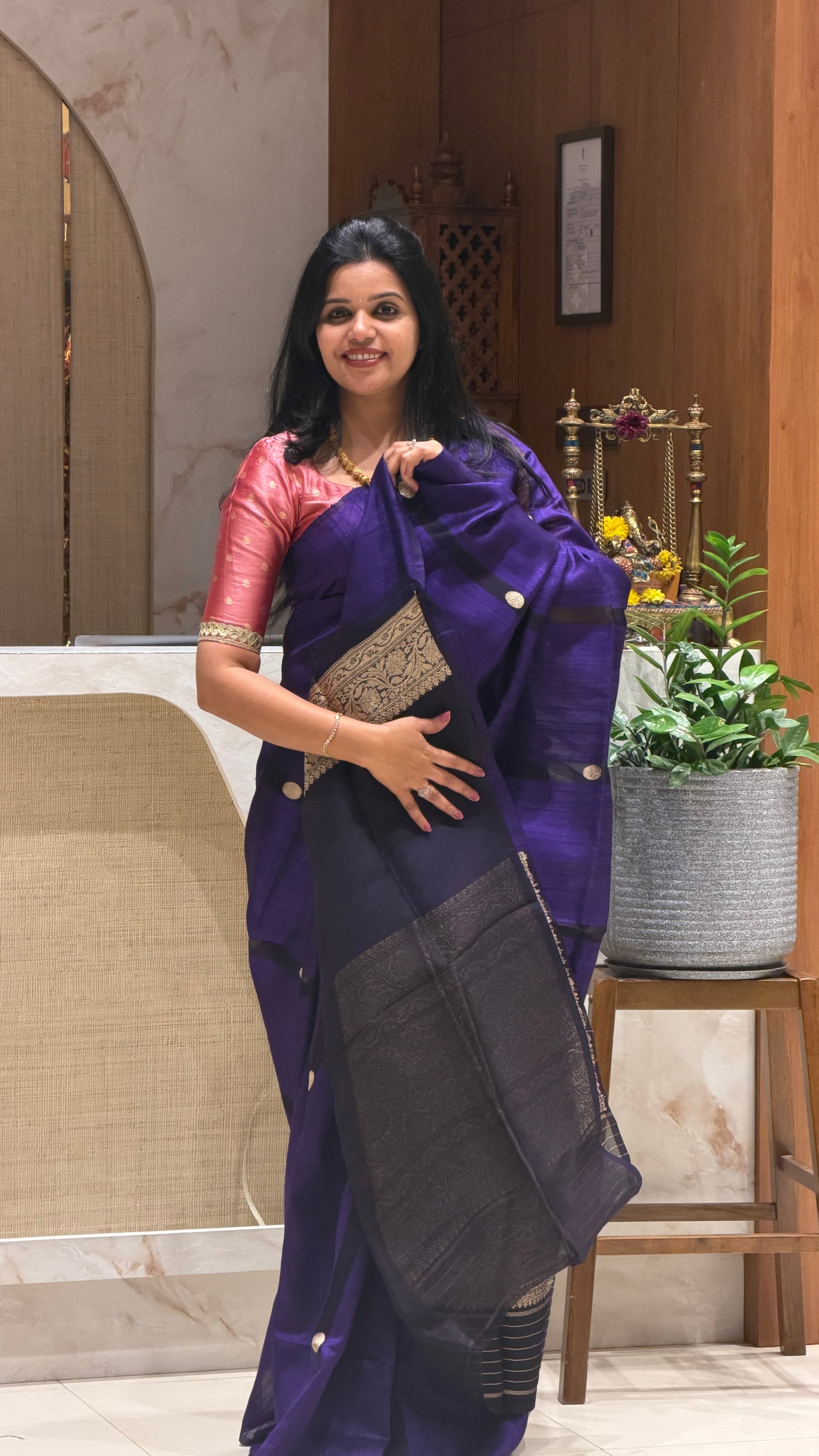 Fabric: Pure Dupion silk sari! Blended with the stripes of Organza to highlight the Zari woven antique coin Butta!