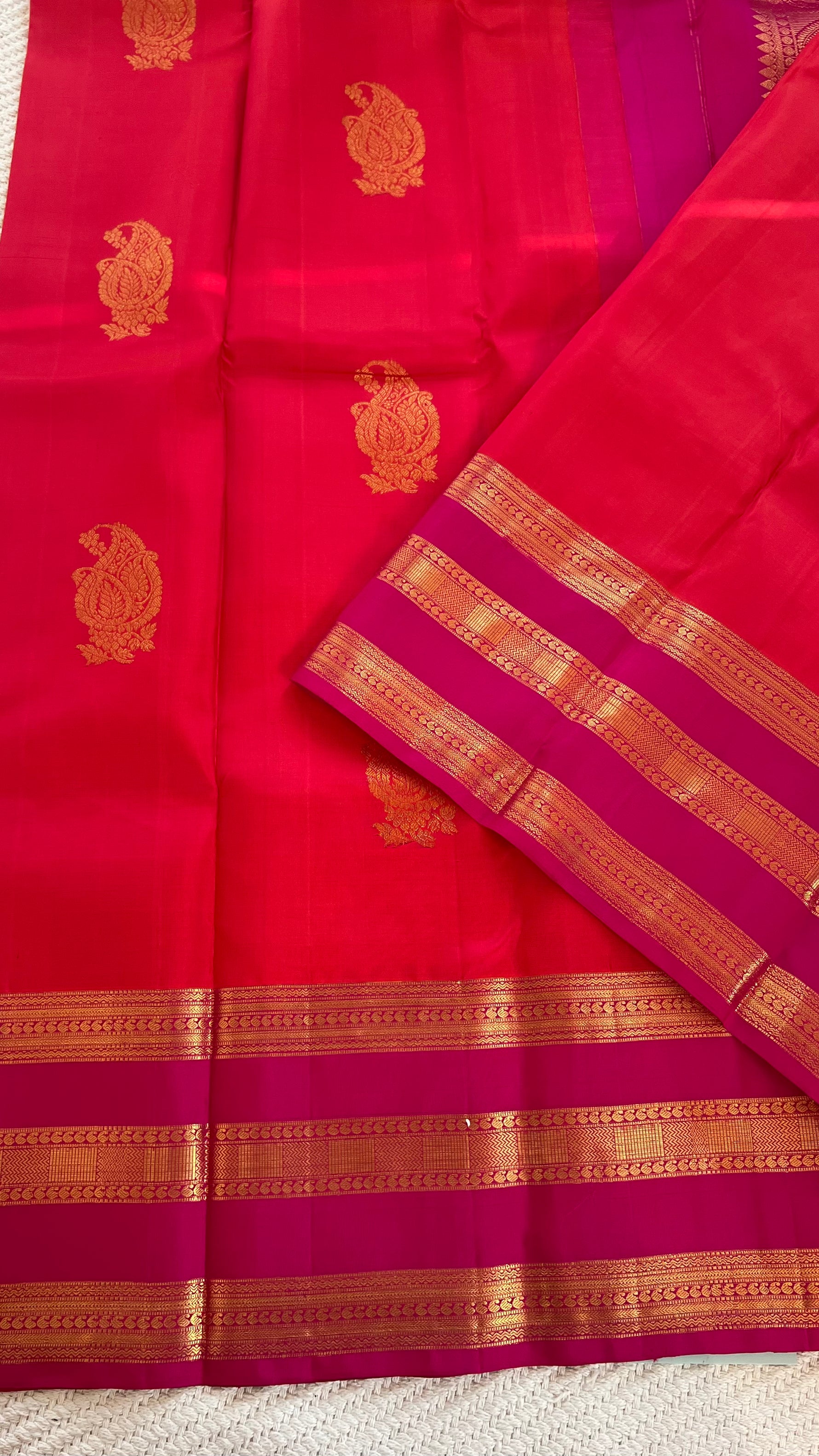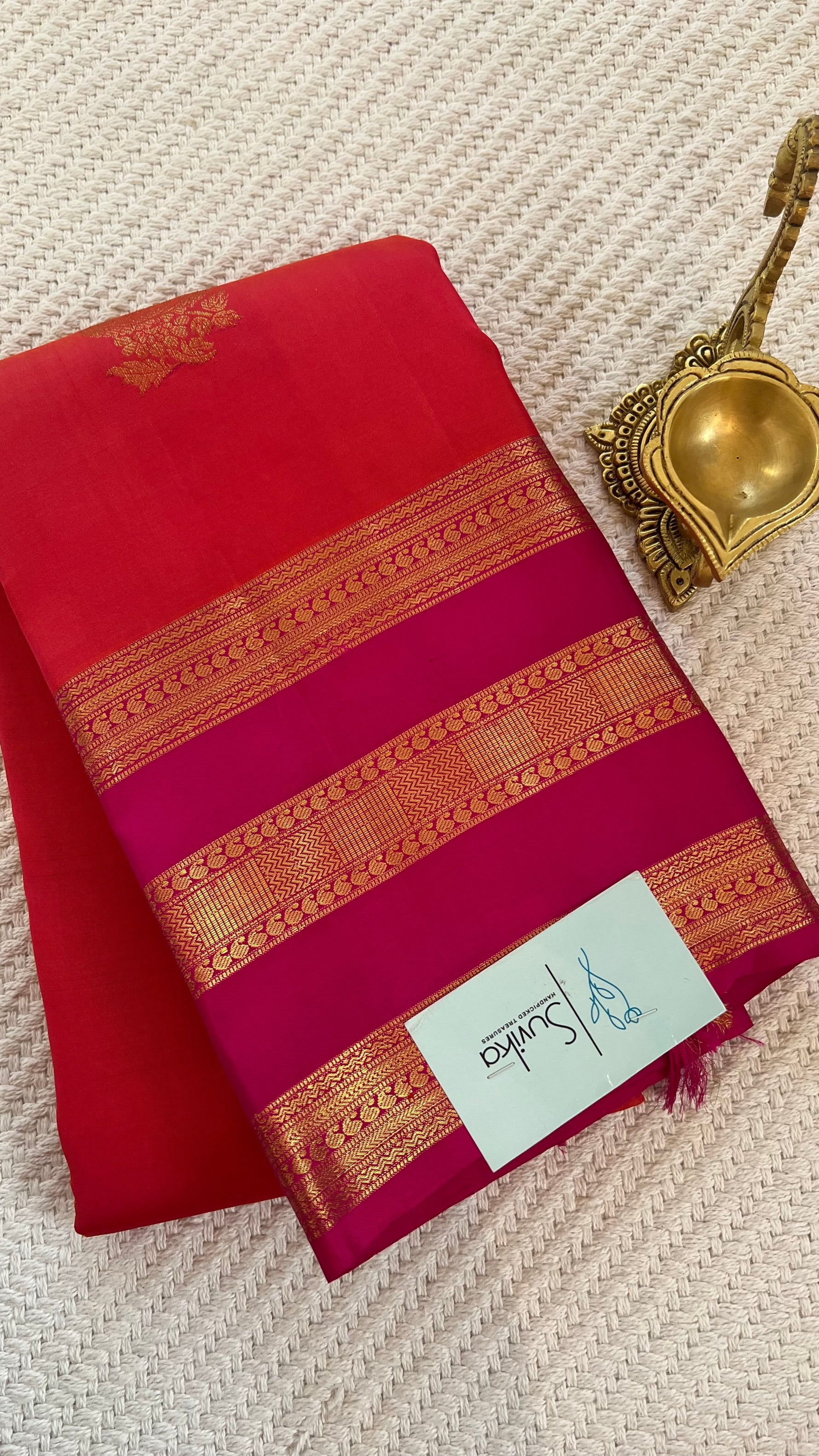 SUV1977 - ORANGE WITH PINK PURE KANCHIPURAM SAREE