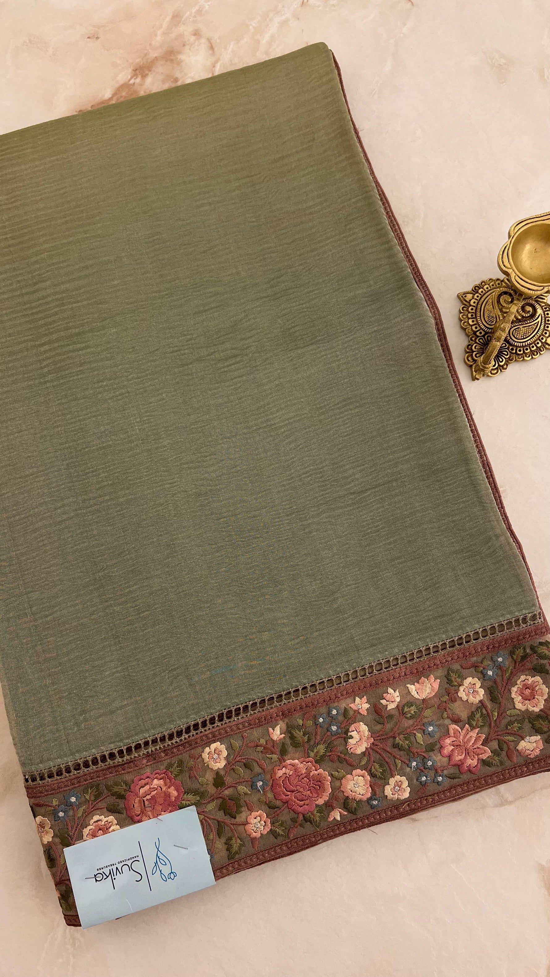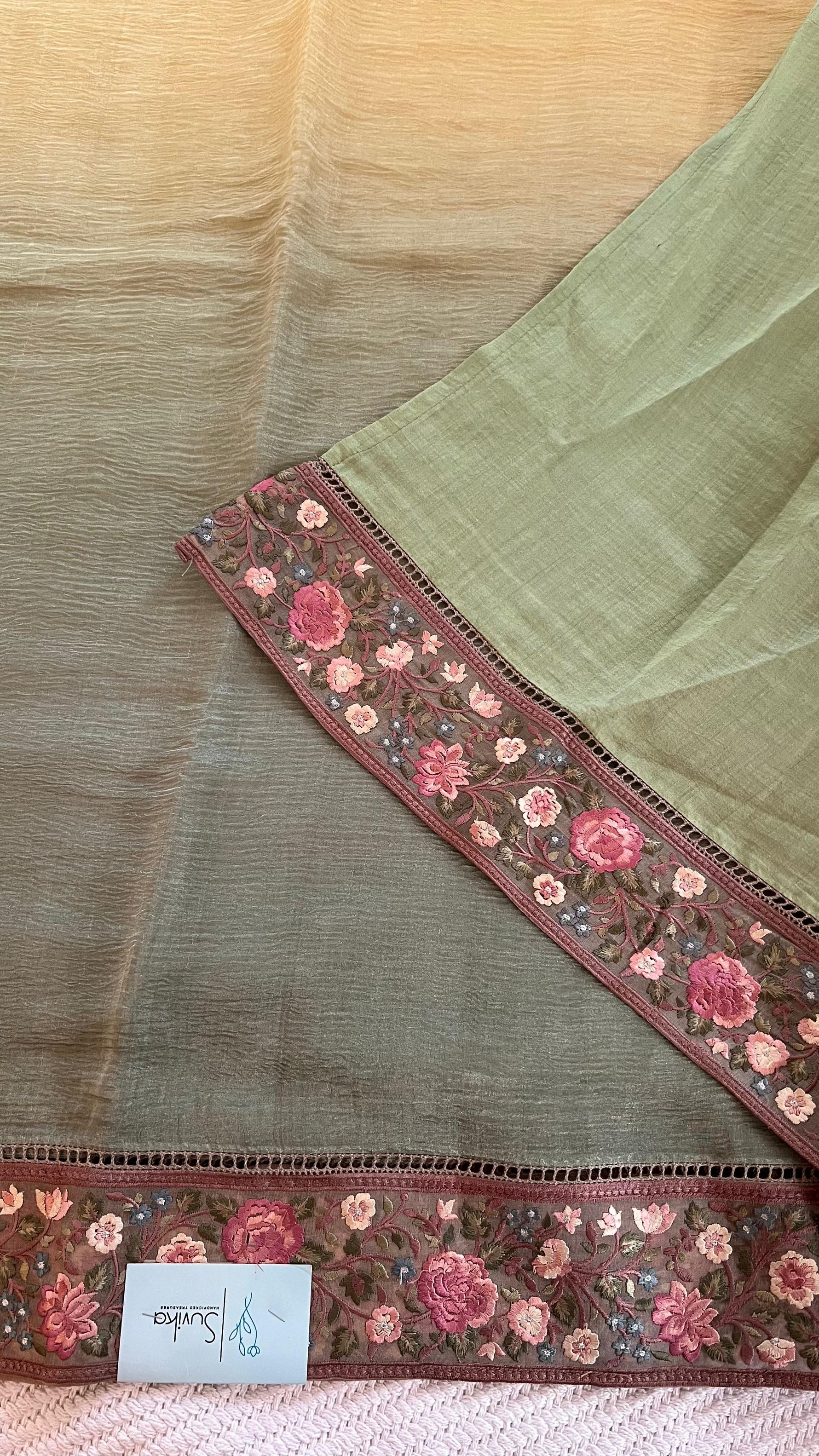 FABRIC: - PURE SOFT TISSUE SAREE WITH floral embroidery border and pallu