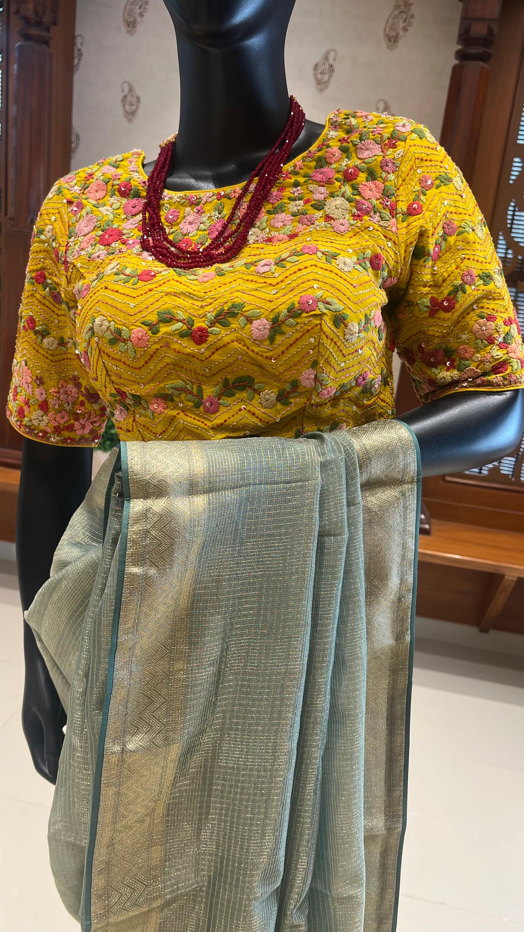 BLOUSE :  EMBROIDERY BLOUSE, BLOUSE SIZE 38( CAN BE ALTERED UPTO 40)