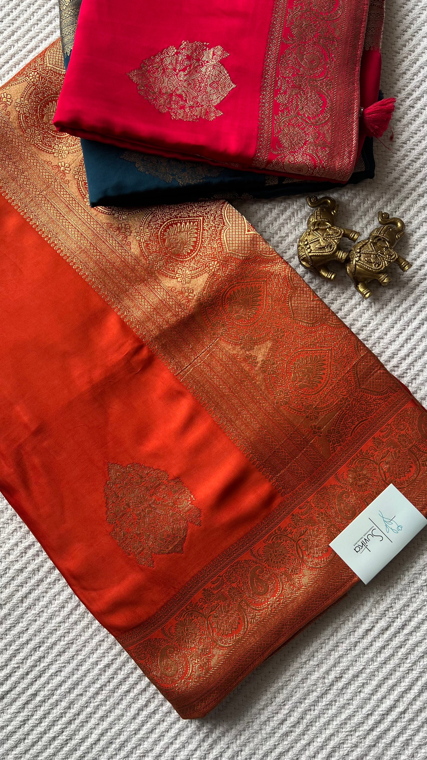 Frabic: pure satin silk saree gold zari motifs woven  and rich zari woven border and pallu