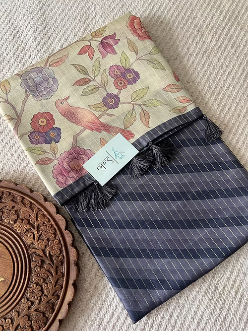 Fabric :  TUSSER SILK SAREE WITH PRINTED PALLU AND BLOUSE