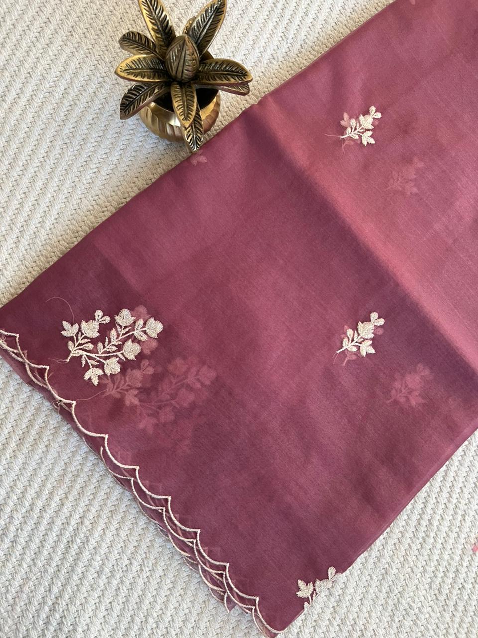 Fabric: ORGANZA SAREE WITH EMBROIDERY WIRK AND SCALLOP BORDER
