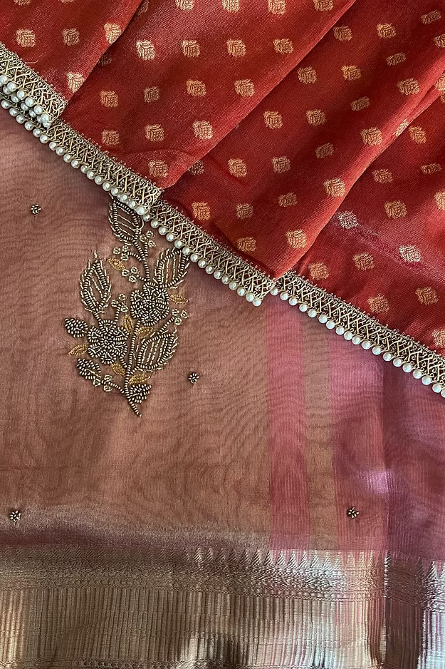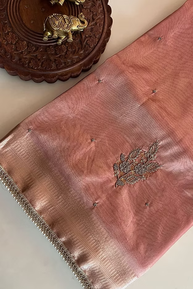 Saree Fabric : Tissue saree with Handwork Embroidery .
