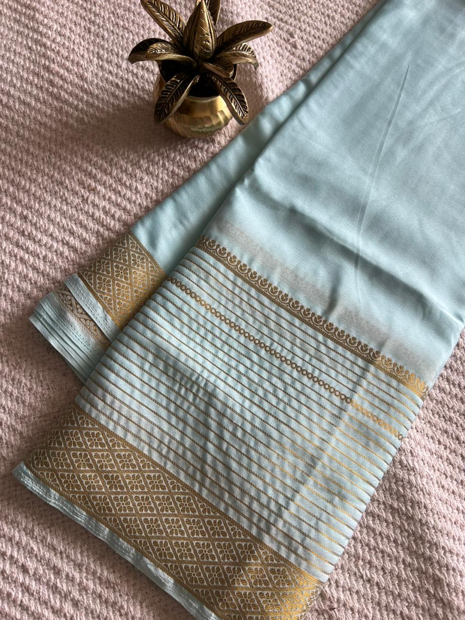 Mysore crepe saree with a Zari striped border