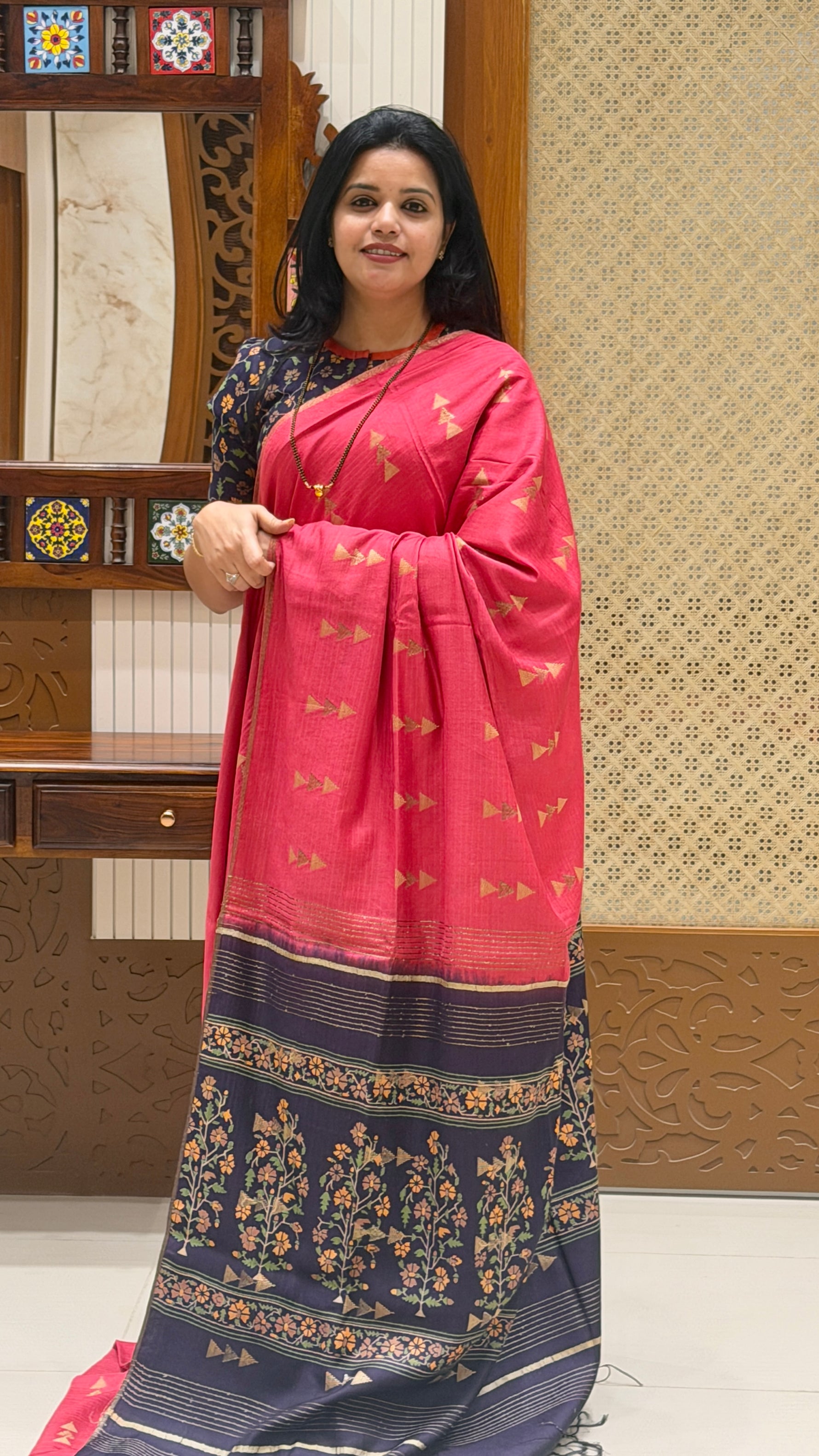 Note : There might be mild colour variation in the saree due to colour reproduction in camera and screen.