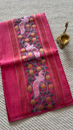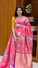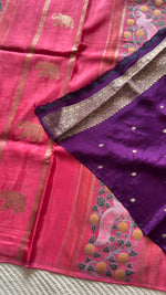 Chiniya silk saree with Woven zari motifs in gold elephants, Pashmina weaving and rich pallu