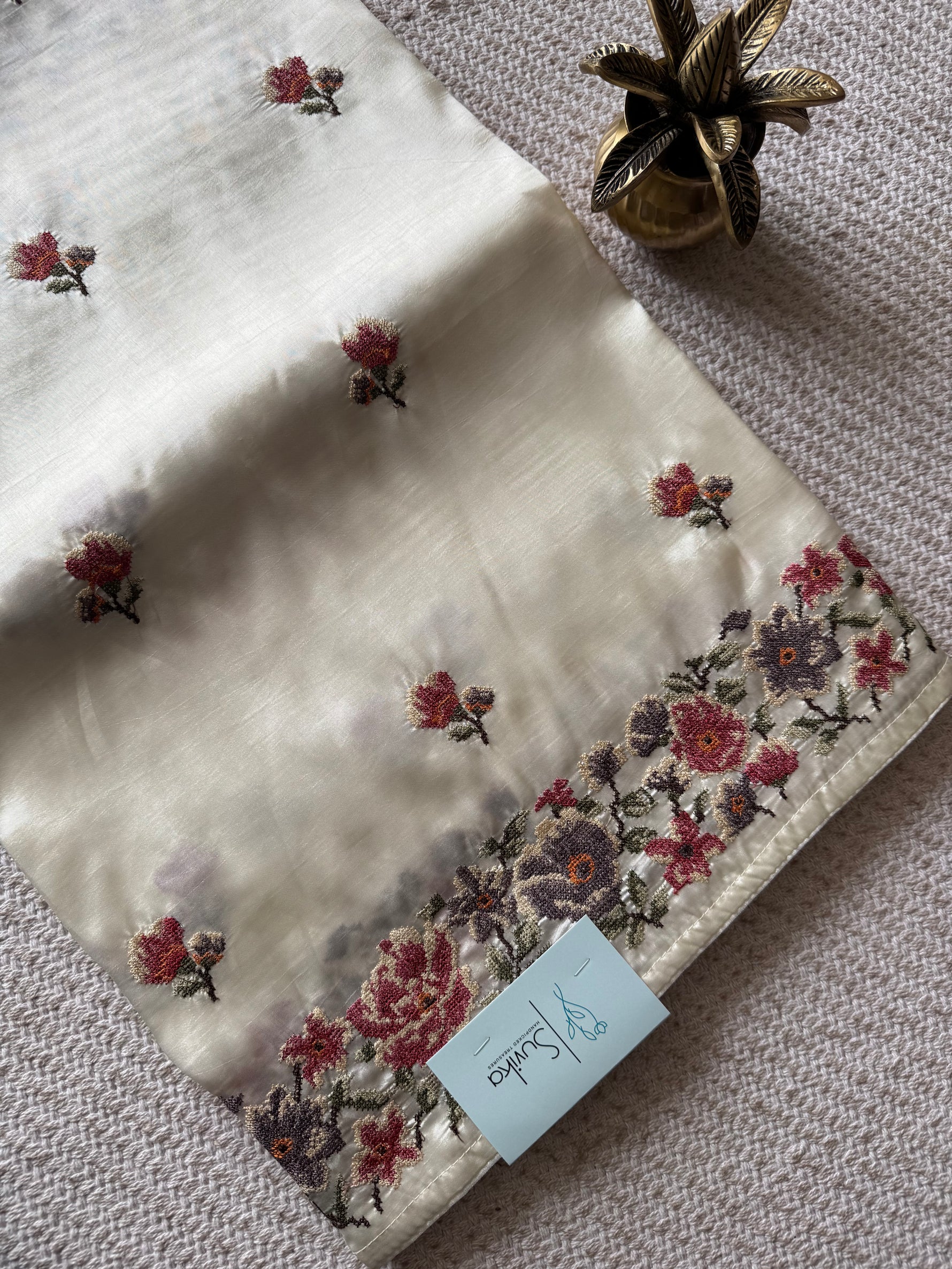 Viscose tussers WITH CROSS STITCH FLORAL EMBROIDERY FLOWER MOTIFS