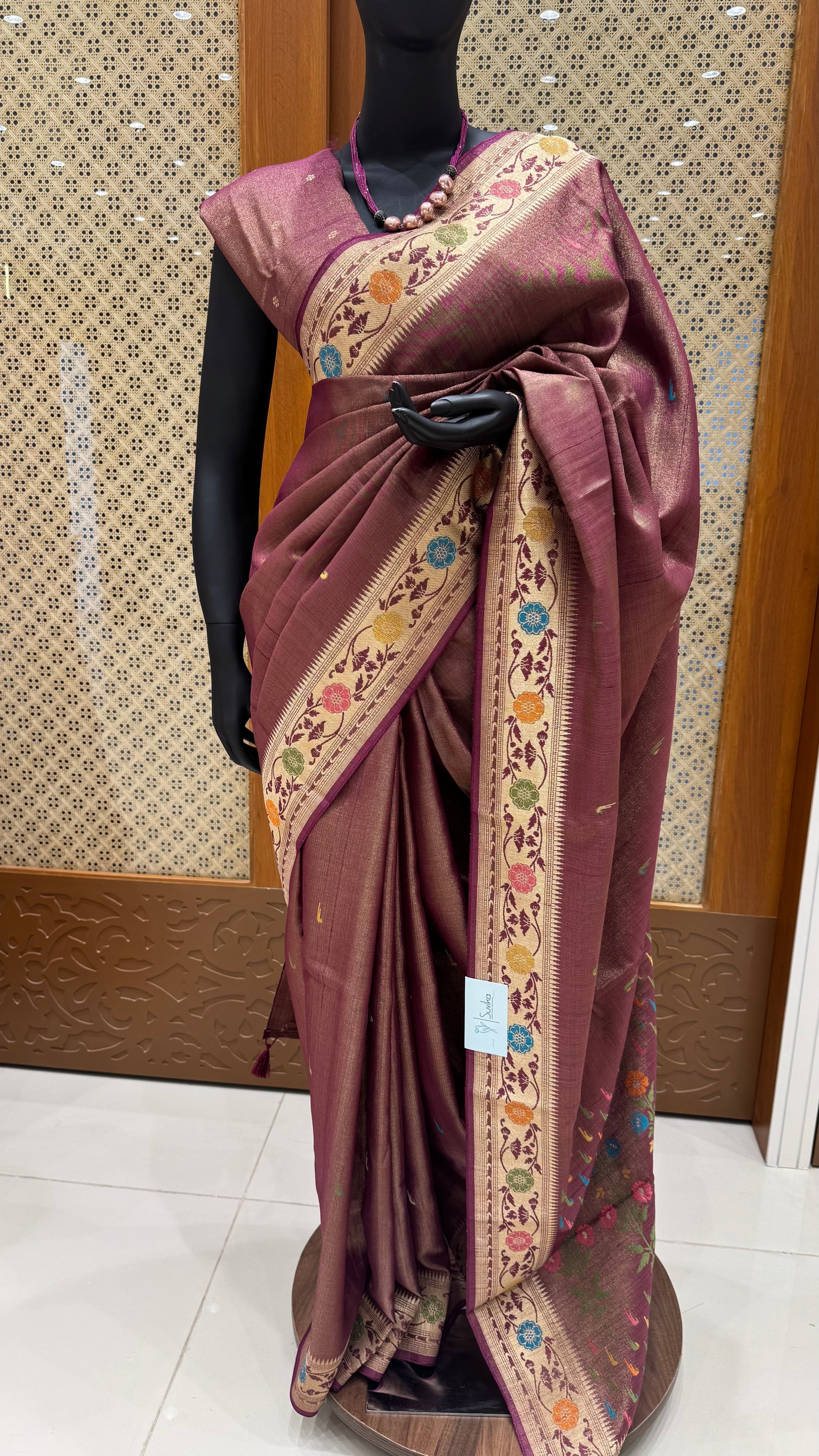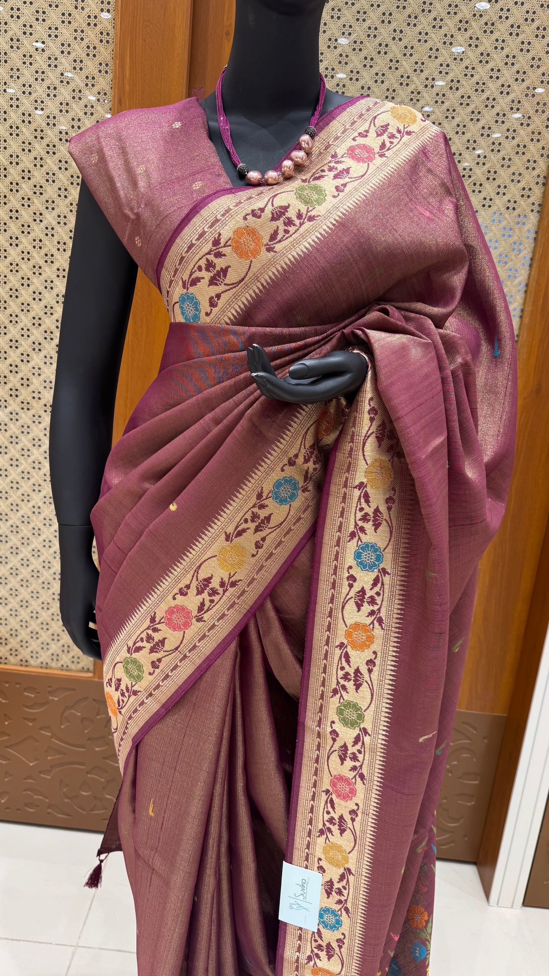 FABRIC: - TISSUE CREPE SILK SAREE WITH PAITHANI BUTTA  ON THE BODY AND PASHMINA WEAVING BORDER